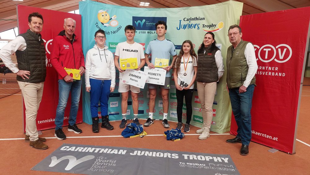 Die 6th Carinthian Juniors Trophy powered by KELAG presented by RA Fresacher ist aus rot-weiß-roter Sicht auch heuer sehr erfolgreich verlaufen. Insbesondere bei den Jungs, wo Florian Zimmer beim ITF-J100-Teppichevent im Tennisclub Neudau in Wolfsberg den bis dato größten Titel seiner Jugendlaufbahn egalisierte. Der Niederösterreicher, dessen ältere Schwester Alexandra bei dieser Veranstaltung 2023 ins Finale vorgedrungen war, blieb im gesamten Turnierverlauf ohne Satzverlust und wurde hiermit seiner Topsetzung gerecht. Den finalen Showdown konnte die 17-jährige Nachwuchshoffnung am Samstag gegen den fünftgereihten Italiener Tommaso Pedretti mit 6:4, 7:6 (6) für sich verbuchen. In der Jugendweltrangliste steht Zimmer vor dem erstmaligen Sprung unter die Top 100, er verbesserte sich im internationalen U18-Ranking von Platz 123 ausgehend um genau 20 Positionen an die 103. Stelle. Neben ihm hatte lediglich Philip Niederle zumindest das Viertelfinale erreicht.