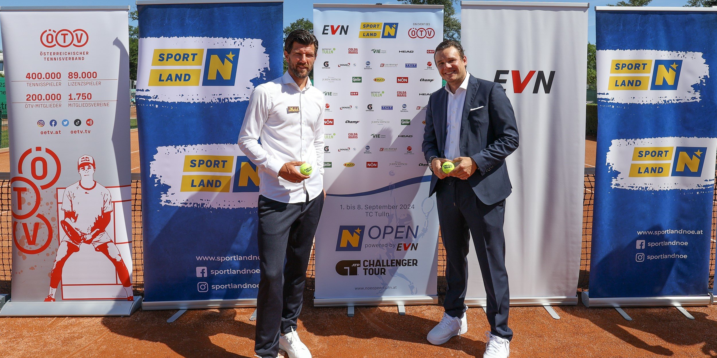 Vom 1. bis 8. September steigt beim TC Tulln die bereits vierte Auflage der NÖ Open powered by EVN. Als ATP-100-Challenger wird das Turnier die Fans auf den Rängen und vor den TV-Schirmen – ORF SPORT+ und ÖTV TV übertragen live – nicht nur mit Spitzentennis von internationalen Assen und heimischen Topspielern wie Jungstar Joel Schwärzler begeistern. Auch die vielfältigen Side-Events mit täglichen On-Court-Talks, einer brisanten SPORTLAND-Niederösterreich-Podiumsdiskussion, der One Shot Challenge, Meet & Greets mit prominenten Sporthilfe-Athlet:innen und einem NÖTV-Kids-Schaukampf vor dem großen Finale haben es in sich. Also, sichert euch schon jetzt eure Tickets!