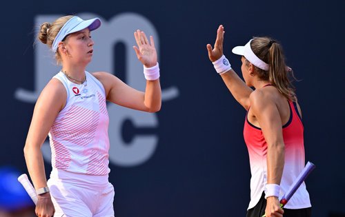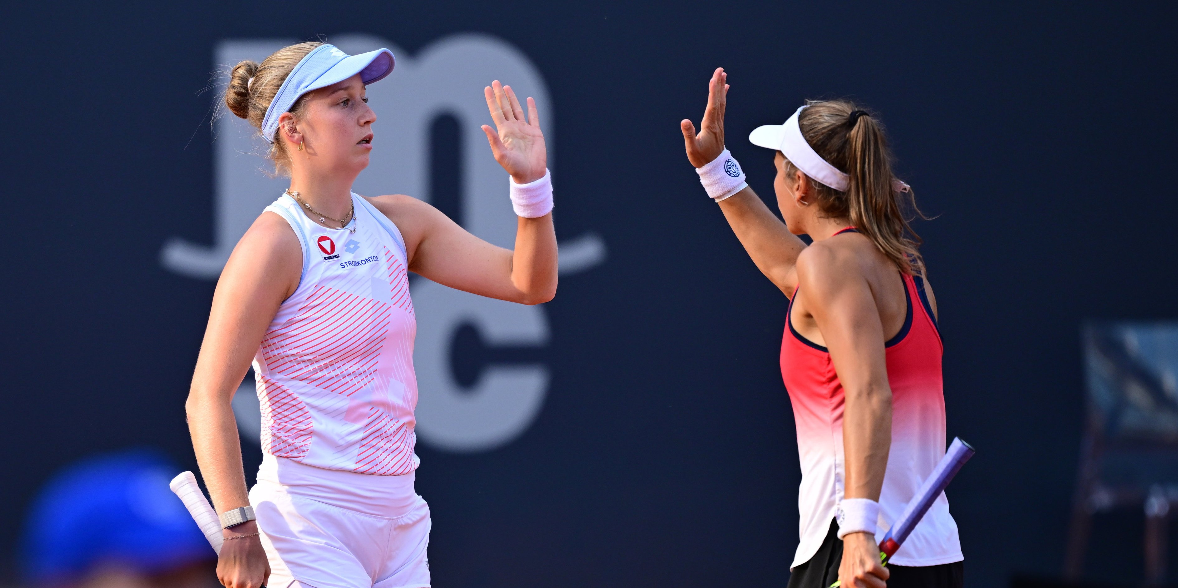 Julia Grabher (rechts) behielt im ÖTV-Duell mit Sinja Kraus (links) die Oberhand und ist in Brasilien im Halbfinale angelangt.